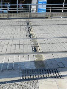Cependant, il ne faut pas crier victoire trop tôt. A quelques mètres de là, toujours rue Jules-Ferry, la circulation incessante de véhicules automobiles, qui n’ont rien à faire sur la plateforme du tramway, endommage les grilles des avaloirs des eaux de pluies qui jalonnent la rampe. A un endroit, la presque totalité de ces grilles a disparu.
