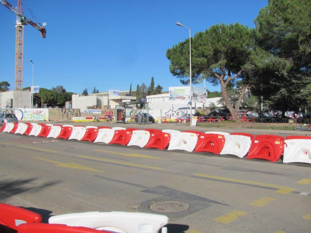 Travaux en cours sur la route de Mende à Montpellier, à la hauteur de la place de la Voie-Domitienne, en lien avec le chantier de la future ligne 5 de tramway. Situation au mardi 12 novembre 2019. Copyright : Edouard Paris
