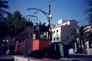 - A Port de Sóller, la composition formée par la motrice 1 Cardé y Escoriaza (année 1913) et une voiture est photographiée peu de temps après avoir quitté le terminus « Marysol », à destination de Sóller, le jeudi 13 septembre 2001. Copyright : Edouard Paris