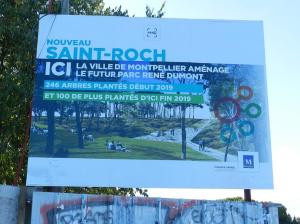 Le panneau sur lequel apparaît le visuel du futur parc René-Dumont à Montpellier, à deux pas de la station « Nouveau Saint-Roch » desservie par les lignes 2 et 4 de tramway, vient de subir des modifications.