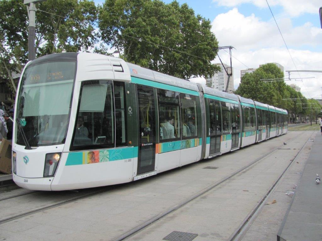 A Paris (18e), la rame 350 Citadis 402 Alstom, opérant sur la ligne T3b et circulant en direction du terminus « Porte d’Asnières – Marguerite Long », est photographiée à la station « Porte de Clignancourt », le vendredi 27 septembre 2019. Copyright : Edouard Paris