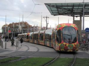 - La rame 2010 Citadis 401 Alstom, opérant sur la ligne 1 en direction du terminus « Mosson », est photographiée boulevard Ledru-Rollin à Montpellier sur les rails de la ligne 4, le mardi 3 décembre 2019 à 9h16. Copyright : Edouard Paris