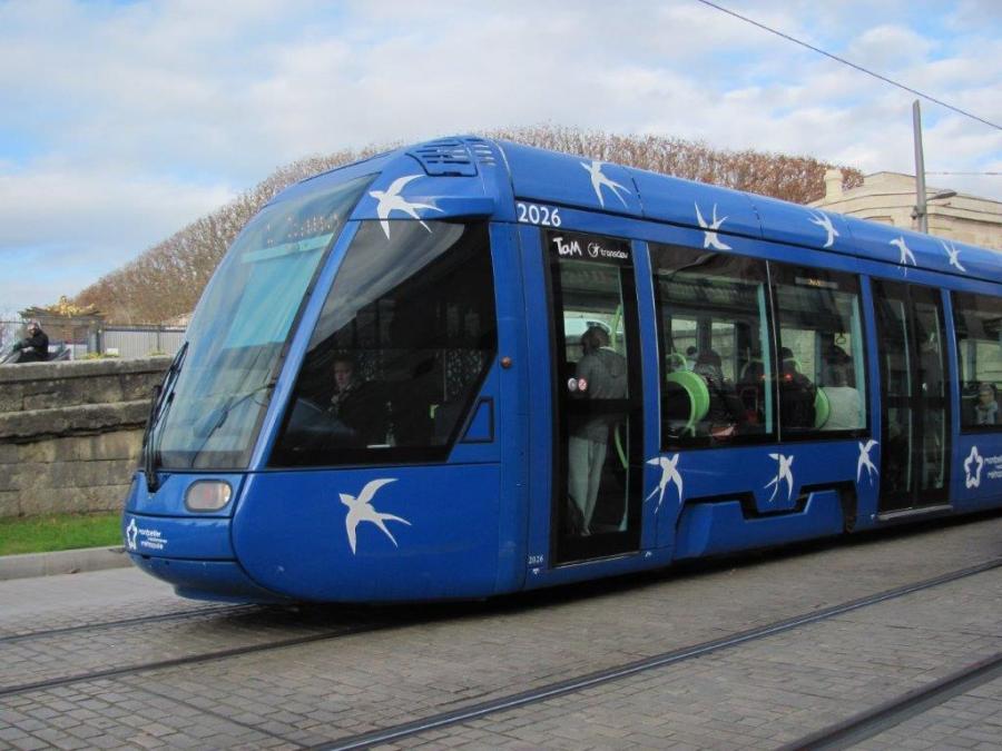La motrice de tête de la rame 2026 Citadis 401 Alstom, opérant sur la ligne 1 en direction d’Odysseum, est photographiée boulevard du Professeur Louis-Vialleton sur les rails de la ligne 4, le mardi 3 décembre 2019 à 10h25. Copyright : Edouard Paris