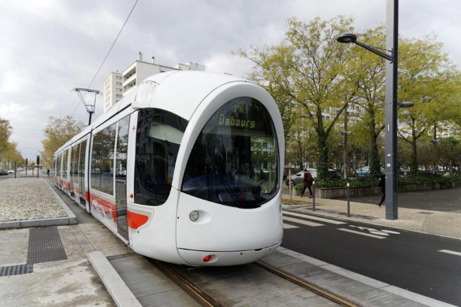 A Lyon (8e arrondissement), la rame 856 Citadis 302 Alstom est photographiée au moment où elle quitte la station « Beauvisage – CISL » de la ligne T6 en direction du terminus sud-ouest « Debourg », le vendredi 22 novembre 2019, jour de l’inauguration de cette ligne T6. Copyright : Yvon Brument