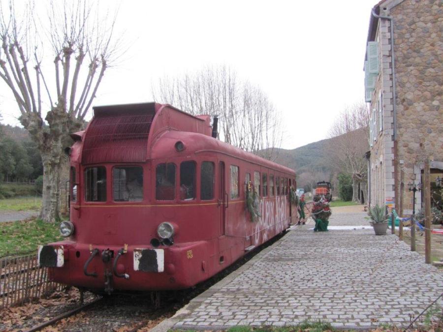 En gare de Thoiras-Lasalle, l’autorail Renault VH-24, surnommé « Iroquois » à cause du radiateur d’eau positionné sur son toit, va prendre la direction de la halte du Père Noël dans quelques minutes, le samedi 14 décembre 2019. Copyright : Edouard Paris