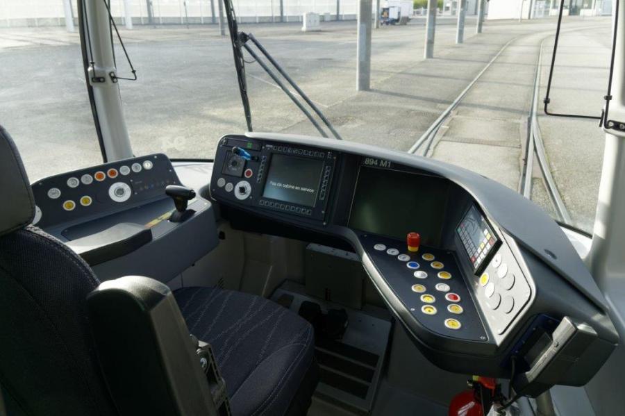 Poste de conduite de la motrice 1 de la rame 894 Citadis 402 Alstom du réseau de tramways lyonnais. Photo prise le mercredi 18 décembre 2019. Copyright : Yvon Brument