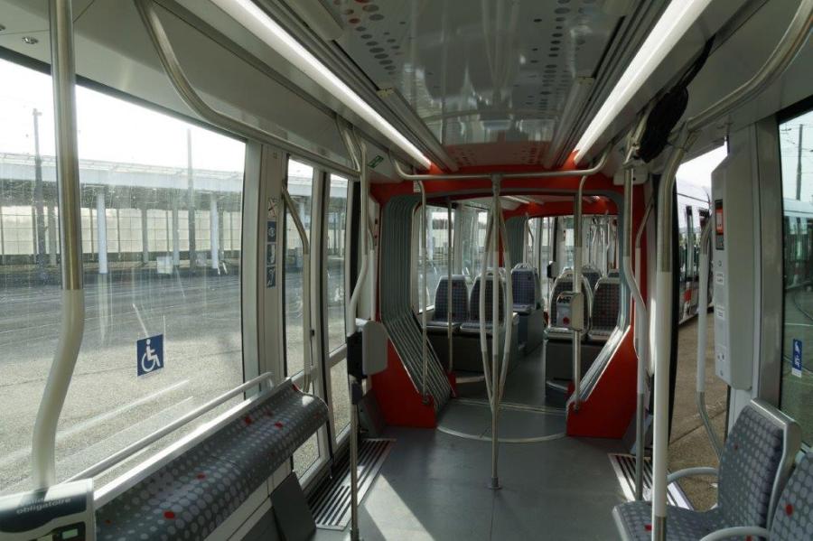 Autre aperçu de l’aménagement intérieur de la rame 894 Citadis 402 Alstom du réseau de tramways lyonnais. Photo prise le mercredi 18 décembre 2019. Copyright : Yvon Brument