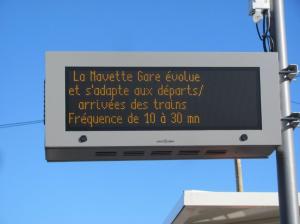 - Un tableau électronique d’information a été installé à l’arrêt « Gare Montpellier Sud de France » de la navette bus. Photo prise le samedi 21 décembre 2019. Copyright : Edouard Paris