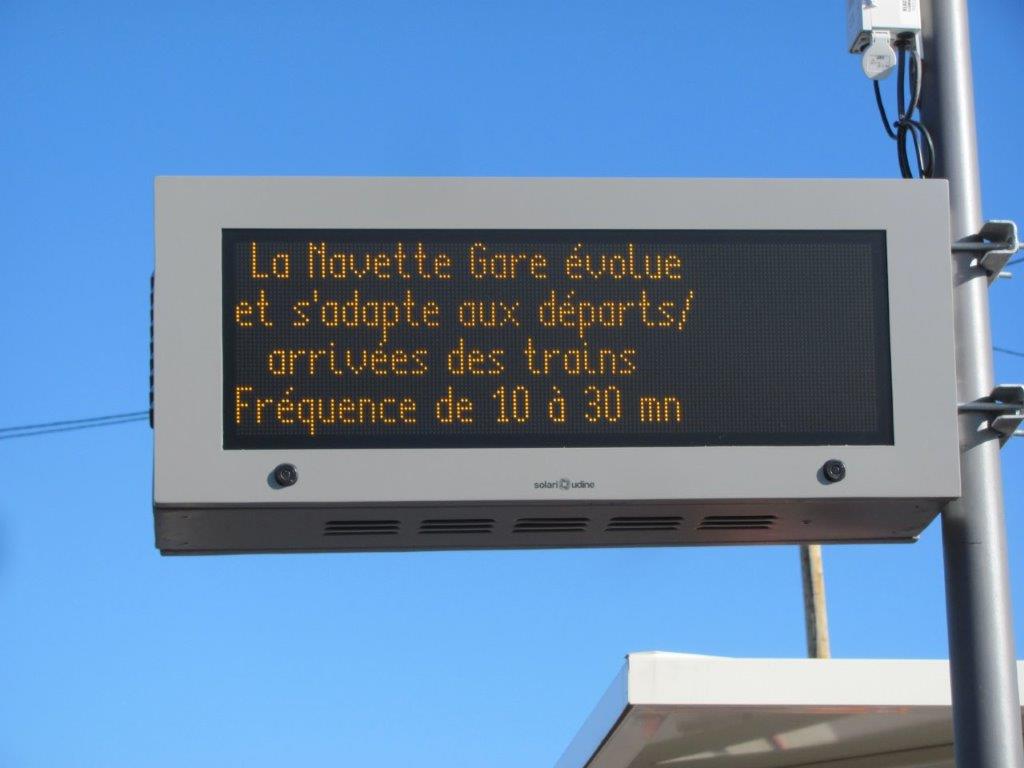 Un tableau électronique d’information a été installé à l’arrêt « Gare Montpellier Sud de France » de la navette bus. Photo prise le samedi 21 décembre 2019. Copyright : Edouard Paris