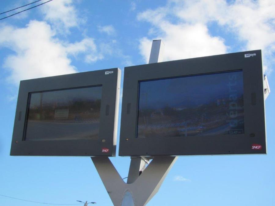 En descendant à l’arrêt « Gare Montpellier Sud de France », la clientèle de la navette peut désormais connaître les arrivées et départs en gare de Montpellier Sud de France sur des écrans nouvellement installés. Photo prise le lundi 23 décembre 2019. Copyright : Edouard Paris