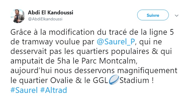 Capture d’écran du tweet posté par Abdi El Kandoussi, président de TaM Montpellier 3M, le vendredi 27 décembre 2019
