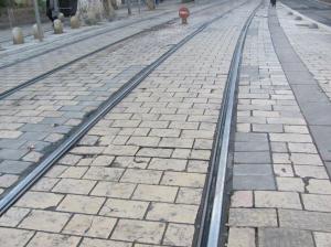 - Boulevard Louis-Blanc à Montpellier, aperçu des nouvelles dalles de pierre posées la veille au soir sur la plateforme des lignes 1 et 4 de tramway. Photo prise le jeudi 9 janvier 2020. Copyright : Edouard Paris