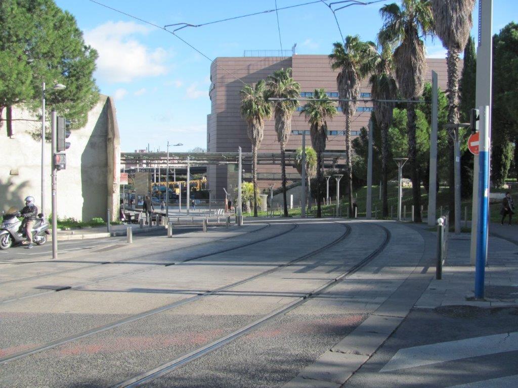 Des travaux de remplacement des rails et des enrobés de la courbe située entre la station « Corum » et le boulevard Louis-Blanc sont programmés cette année 2020. Photo prise le vendredi 10 janvier 2020. Copyright : Edouard Paris