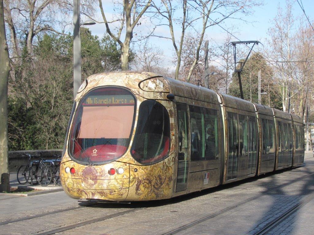 La rame 2045 Citadis 302 Alstom, opérant sur la ligne 4 dans le sens b, est photographiée dans le haut du boulevard Henri-IV à Montpellier, le jeudi 9 janvier 2020. Copyright : Edouard Paris