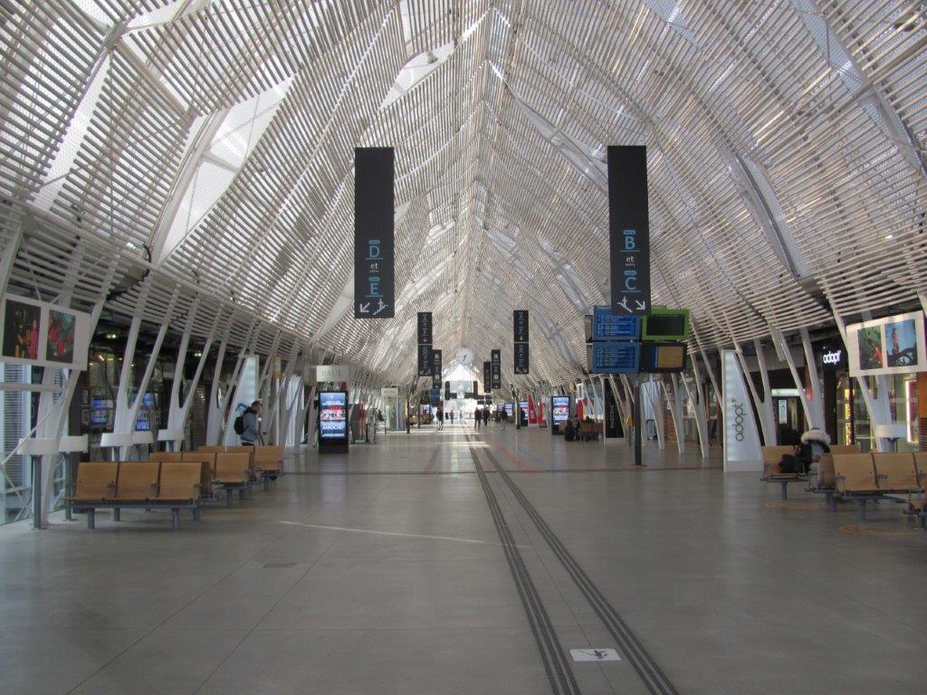 Hall supérieur voyageurs de la gare de Montpellier Saint-Roch photographié à 10h50, le lundi 13 janvier 2020, 40e jour de grève consécutif à la SNCF contre le projet de réforme des retraites. Copyright : Edouard Paris