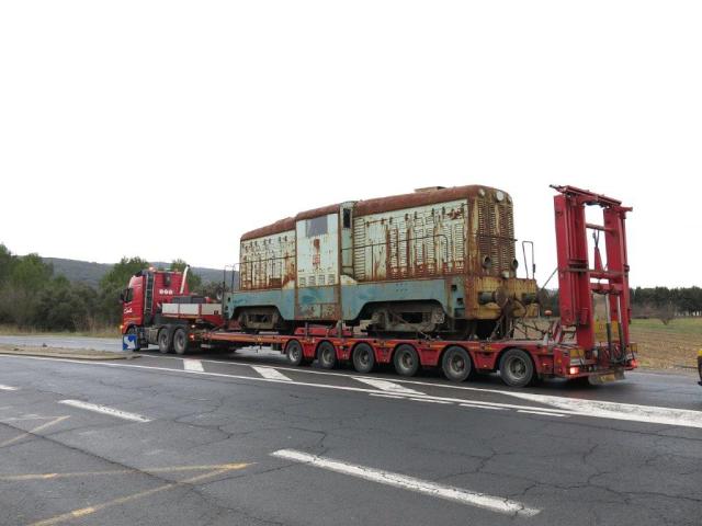 Transportée par convoi exceptionnel routier entre le dépôt CFTA (Société générale de chemins de fer et de transports automobiles) d’Arc-lès-Gray (Haute-Saône) et la gare de Saint-Paul-de-Fenouillet (Aude), siège social du Train du Pays Cathare et du Fenouillèdes (TPCF) également appelé Le Train Rouge, la locomotive diesel-électrique BB DE-1 Hérault 27157-1 Coferna, qui a circulé sur la ligne du Petit Train de Palavas, a été aperçue aux portes de Montpellier, le jeudi 23 janvier 2020 après-midi.