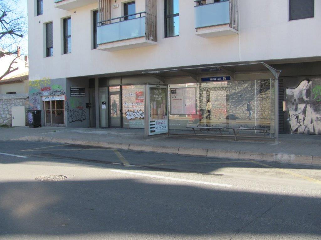 Photographie de l’ancien terminus « Saint Eloi » de La Navette et de la ligne 22 suburbaine après que l’abri situé à gauche de l’abri de la ligne 610 liO a été démonté ce mercredi 5 février 2020. Copyright : Edouard Paris
