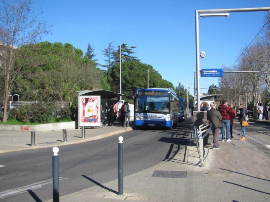 Du lundi 6 janvier 2020 au mercredi 18 décembre 2024, le terminus unique de La Navette A et B est situé à la hauteur de la station « Universités des Sciences & Lettres » de la ligne 1 de tramway. Photo prise le mercredi 5 février 2020. Copyright : Edoaurd Paris