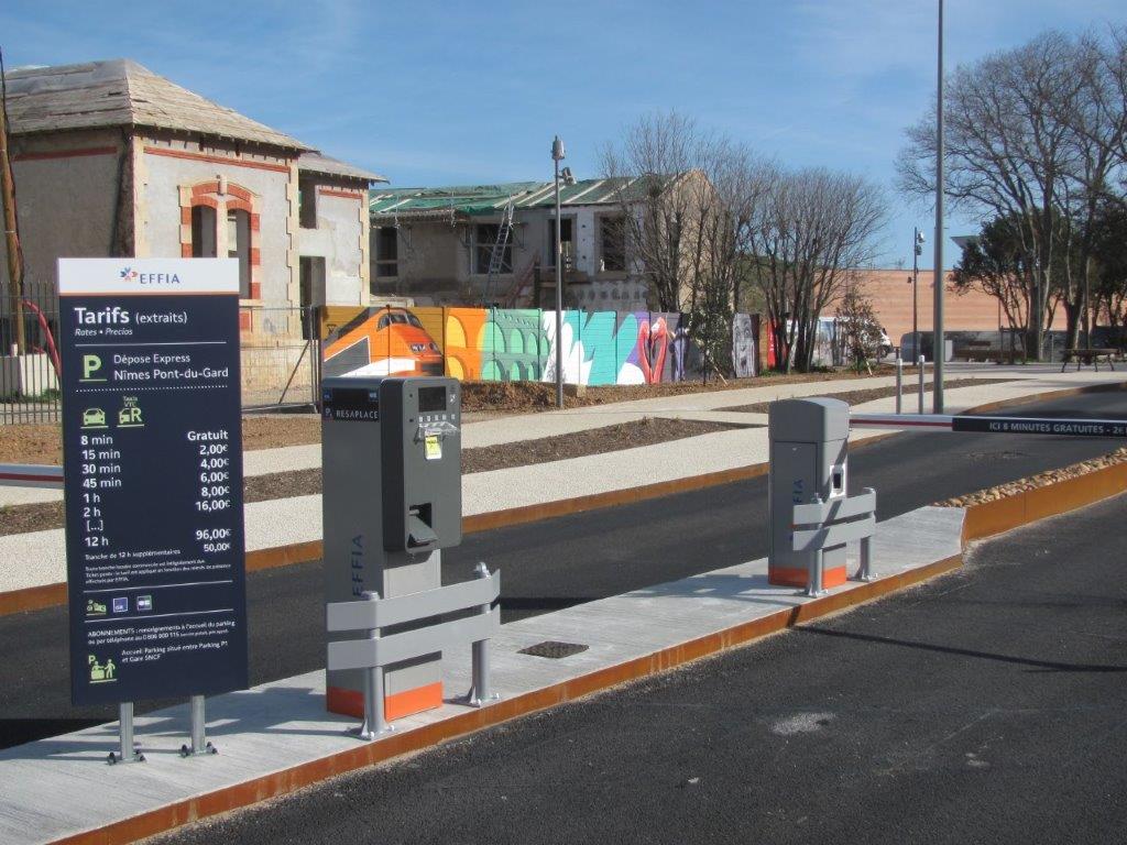 Aperçu des tarifs vertigineux du parking dépose express de la gare de Nîmes Pont-du-Gard, lequel vous donne droit tout de même à 8 minutes gratuites à compter de votre entrée. Photographie prise le mercredi 12 février 2020. Copyright : Edouard Paris