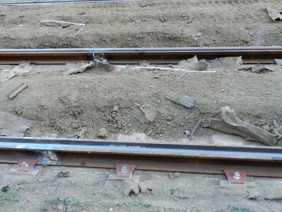 Sur la gauche de la photo prise le vendredi 14 février 2020, aperçu des soudures des nouveaux rails de la voie 1 commune aux lignes 1 et 2, allée de la Citadelle à Montpellier. Copyright : Anje34