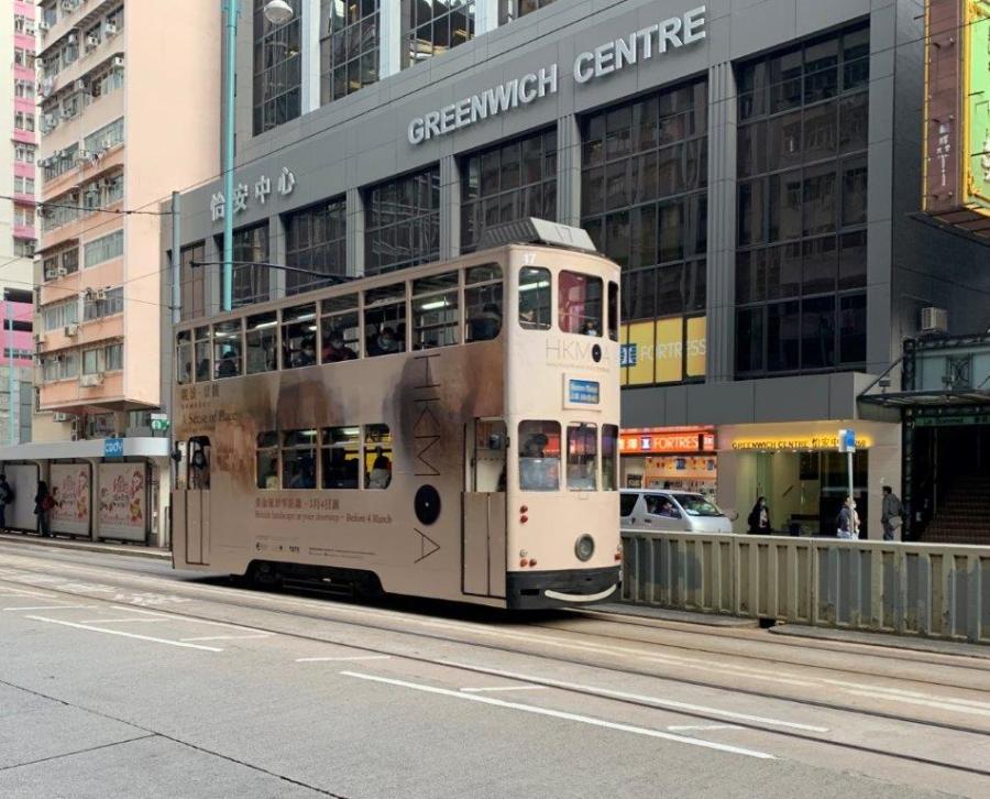 A Hong Kong, livrée Hong Kong Museum of Art pour la motrice 17 photographiée sur King’s Road à la hauteur du Greenwich Centre, le mardi 18 février 2020. Copyright : DS7