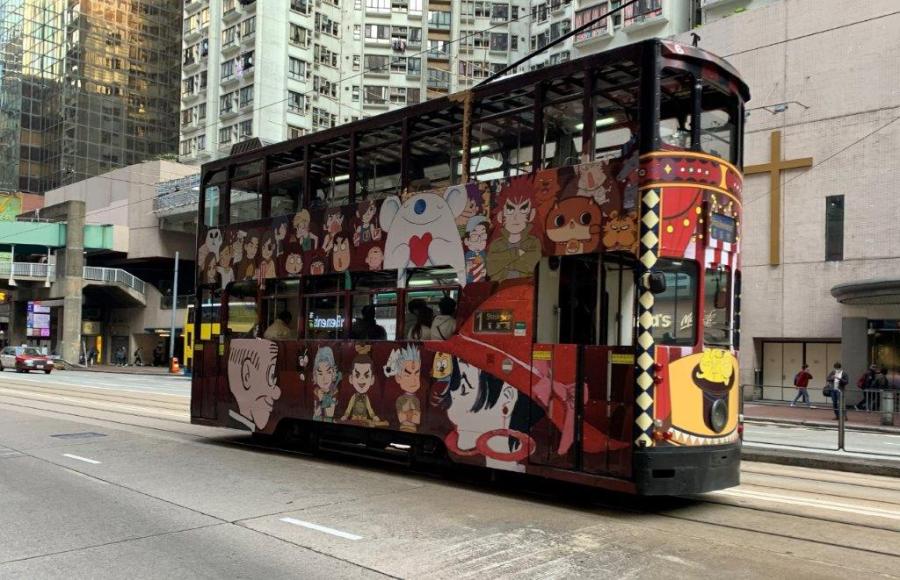 A Hong Kong, sur King’s Road à la hauteur de la North Point Alliance Church, photographie de la motrice à deux niveaux numérotée 6 à la livrée pour le moins originale, le mardi 18 février 2020. Copyright : DS7