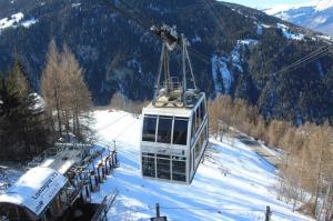 - Photographie d’une des deux cabines double niveau du Vanoise Express depuis la station motrice de Peisey-Vallandry « Plan Peisey » (1 612 m), le vendredi 7 février 2020. La gare de tension de Montchavin « Les Coches » (1 548 m) est située en face à 1 824m de là. Copyright : Marius d’Oriano