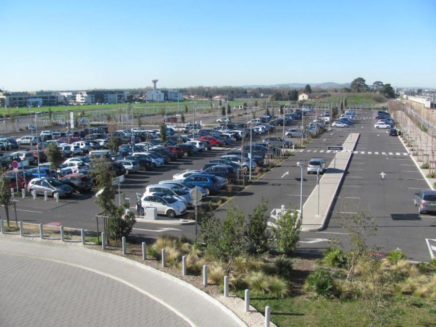 Photographie du parking sud-ouest de la gare de Montpellier Sud de France prise à 10h14, le jeudi 20 février 2020. Copyright : Edouard Paris