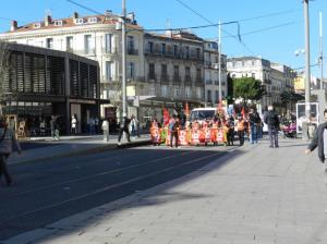 Le cortège, fort de 1 200 manifestants environ, s’est ébranlé vers 11h. Le parcours retenu l’a conduit du milieu du cours Gambetta à la place de la Comédie en passant par la place Saint-Denis, la rue du Faubourg-de-la-Saunerie, la place Edouard-Adam, le boulevard de l’Observatoire, la rue de la République, la place Auguste-Gibert face aux colonnes de la gare Saint-Roch et rue Maguelone.