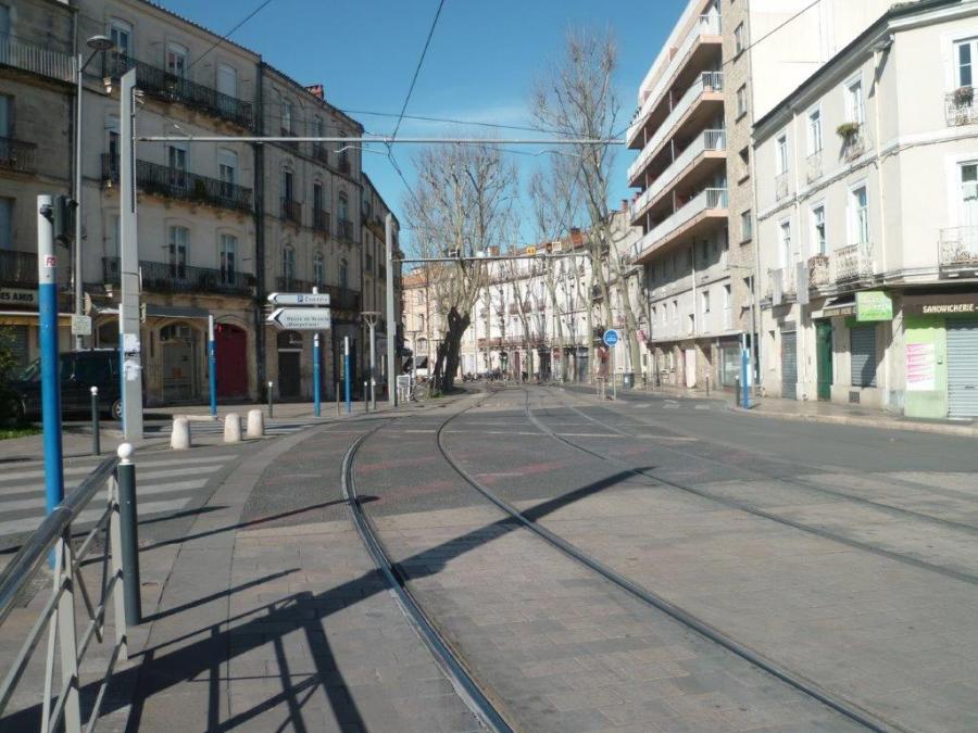 A Montpellier, photographie du carrefour sur lequel débouche la rue Michel Vernière. Photo prise le samedi 22 février 2020. Copyright : Edouard Paris
