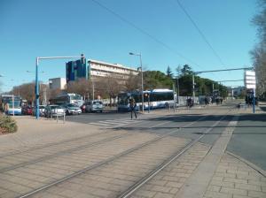 - A Montpellier, l’hôpital Gui-de-Chauliac est desservi par la ligne 1 de tramway, La Navette A et B et la ligne suburbaine 22, à la station « Universités des Sciences & Lettres ». Photo prise le vendredi 28 février 2020. Copyright : Edouard Paris