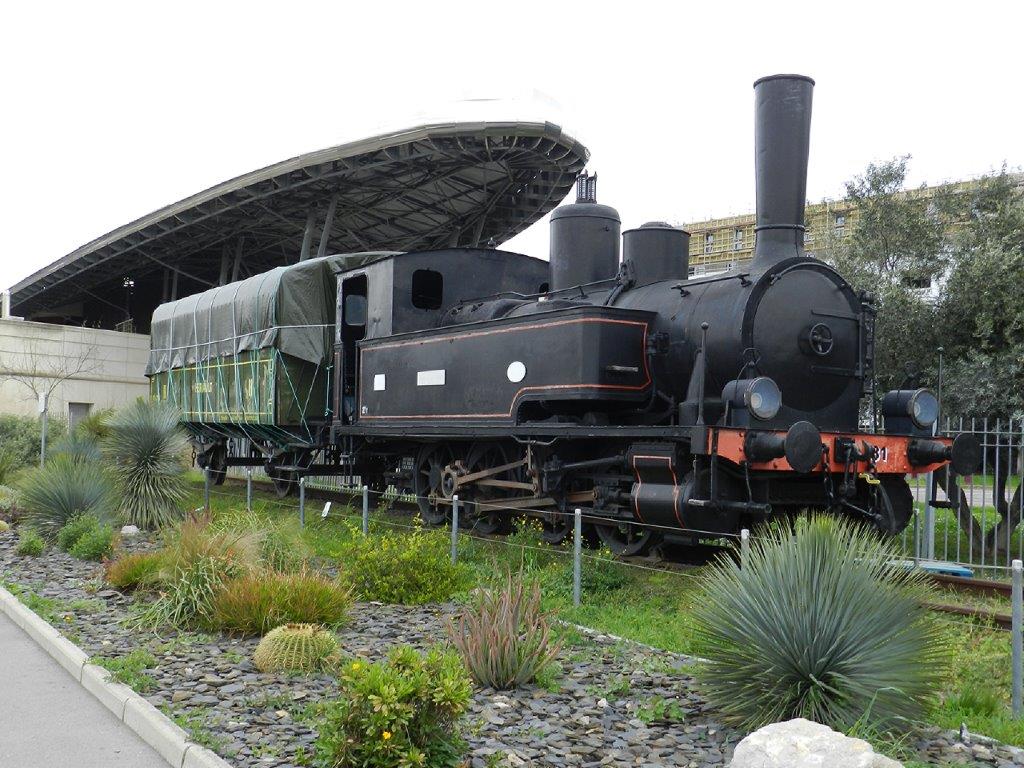 A Montpellier, la locomotive 040T D-81 Schneider (année 1927) et la voiture de 2e classe Cfx 218 (année 1903) du Petit Train de Palavas sont exposées à l’air libre à proximité de la médiathèque Federico Garcia Lorca depuis le samedi 27 janvier 2001. Photo prise le mardi 3 mars 2020. Copyright : Anje34