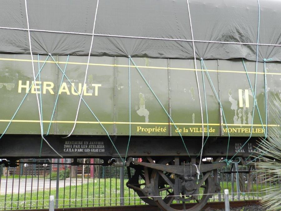 A Montpellier, en bordure du rond-point des Prés-d’Arènes, la voiture voyageurs Cfx 218 construite en 1903 par la Compagnie Française d’Ivry est la propriété de la Ville de Montpellier. Photo prise le mardi 3 mars 2020. Copyright : Anje34