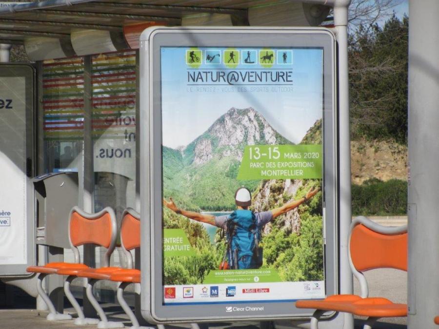 Affiche du Salon Natur@venture photographiée à la station « Saint Jean le Sec » de la ligne 2, le lundi 9 mars 2020. Copyright : Edouard Paris