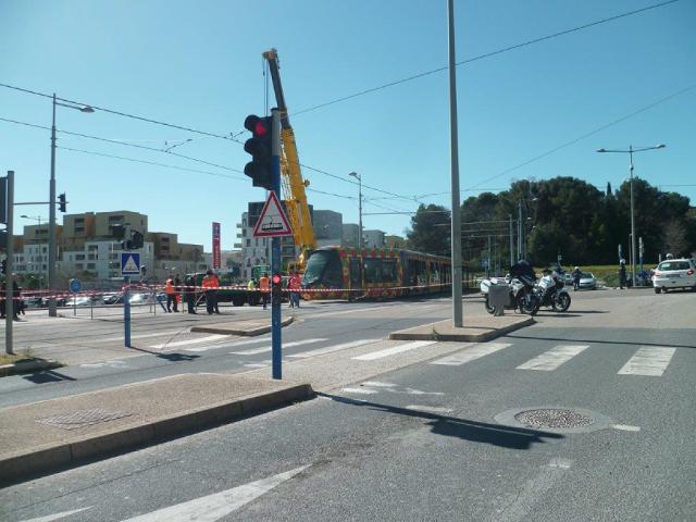 Comme d’habitude, on apprendra que c’est quelqu’un qui « n’a pas vu le feu rouge », comme un bon quart des gens qui circulent à Montpellier… C’est même étonnant qu’il n’y ait pas plus d’accidents, vu le nombre d’intersections tram-route, et le flux important de voitures qui circulent encore… En tout, respectivement par ligne, je dirai qu’il y a au moins 50 intersections si je ne m’abuse en moyenne d’intersections en un aller simple… Ca fait une probabilité assez forte de collision…