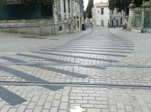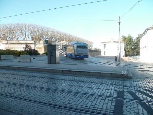 A la fin du mois de janvier 2020, des bandes rugueuses antidérapantes ont été posées dans un seul sens sur la chaussée pavée entre la sortie de la station « Peyrou – Arc de Triomphe » de la ligne 4 a, sens a, boulevard du Professeur Louis-Vialleton, et les bornes rétractables installées dans le haut de la rue du Faubourg Saint-Jaumes. Ce dispositif a été testé durant un mois et demi par les bus des lignes 6 et 7 circulant respectivement en direction de « Euromédecine » et « Hôtel du Département ».