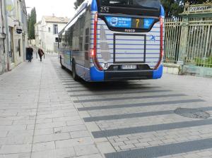 Tout juste avant le premier tour des élections municipales, de nouvelles bandes rugueuses antidérapantes ont été posées sur la place d’Aviler. Elles permettent ainsi aux bus des lignes 6 et 7 circulant respectivement en direction de « Euromédecine » et « Hôtel du Département » d’utiliser à nouveau la rue Pitot dans un seul sens. En conséquence, les riverains des étroites rues du Carré-du-Roi et Richer-de-Belleval ne subissent plus les nuisances liées aux passages des bus dont le nombre, lignes 6 et 7 confondues, pouvait atteindre 176 du lundi au vendredi hors vacances scolaires, mais leur calvaire a quand même duré un peu plus de deux ans.