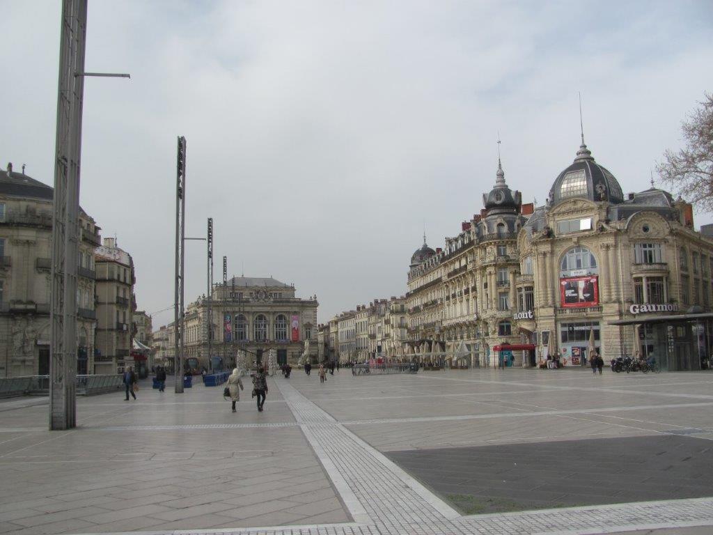 Le mardi 17 mars 2020 à 10h45, photographie de l’emblématique place de la Comédie à Montpellier, soixante quinze minutes avant l’entrée en vigueur du confinement quasi total dans le but de juguler la pandémie de coronavirus Covid-19. Copyright : Edouard Paris