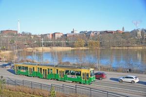 - A Helsinki, la rame 114 MLNRV I Valmet, venant du dépôt de Töölö, circule sur Mannerheimintie pour aller prendre son service sur la ligne 5, le mardi 25 février 2020. Copyright : Thierry Leleu