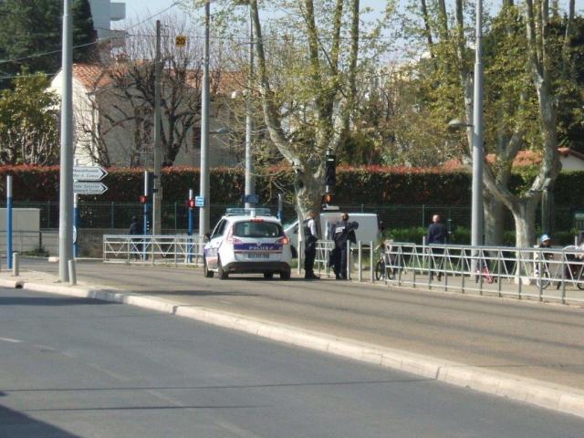 Les contrôles des automobilistes et des passants sont bien réels en ville. Ce samedi 28 mars 2020 après-midi, une patrouille de la police nationale , dont le véhicule était stationné sur la plateforme de la ligne 2 de tramway, non loin de la station « Mas Drevon », vérifiait les attestations de déplacement dérogatoire du côté du parc Tastavin à Montpellier.