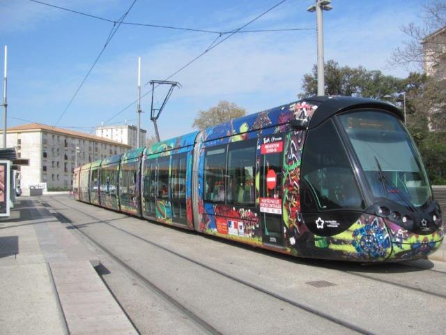 Ce samedi matin, 28 mars 2020, moins de deux heures avant le passage au 12e jour de confinement quasi généralisé, le webmestre a pu constater qu’il n’y avait pratiquement pas âme qui vive avenue de Lodève, rue d’Alco et rue Paul-Rimbaud à Montpellier. Au Géant Casino de Celleneuve, à 10h11, la queue devant l’entrée principale était réduite à sa plus simple expression. Sur la ligne 3 de tramway, dont la fréquence de passage a été ramenée aux horaires « Dimanche et jours fériés » depuis le mercredi 25 mars 2020, date à laquelle les transports publics sur le réseau bus et tramways TaM Montpellier 3M sont devenus gratuits à la condition de présenter à tout contrôle une attestation de déplacement dérogatoire dûment complétée, datée avec mention de l’heure de sortie et signée, doublée éventuellement d’un justificatif de déplacement professionnel, les rames d’une capacité de 300 places ne transportaient pas grand monde. A peine une vingtaine de personnes après que la rame 2076 Citadis 402 Alstom a quitté la station « Tonnelles » en direction du terminus « Juvignac » à 10h09 et quinze personnes environ dans la rame 2079 de même type qui approchait de la station « Tonnelles » dans le sens opposé.