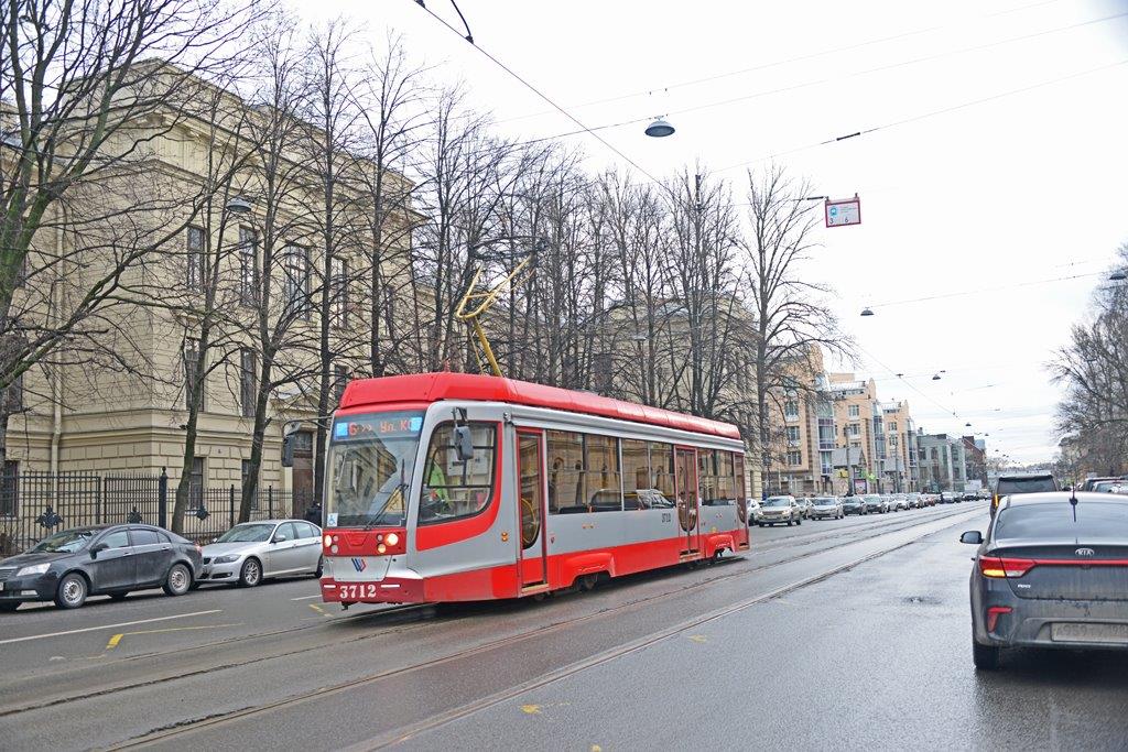 A Saint-Pétersbourg, motrice monocaisse 3712 modèle 71-623-03, sortie des ateliers UKVZ en 2015, numéro de série 231, photographiée rue Botkinskaya sur la ligne 6, le lundi 2 mars 2020. Numérotation précédente selon le dépôt d’affectation : 7915 (07-2015- 05-2016). Copyright : Thierry Leleu