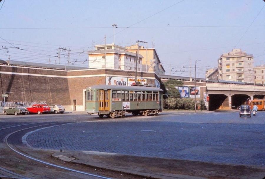 A Rome, piazza Labicano, photographie d’une motrice de la série 2000 MRS opérant sur la ligne 30/ en direction du terminus nord, le jeudi 20 mai 1982. Copyright : jean-pierre autié