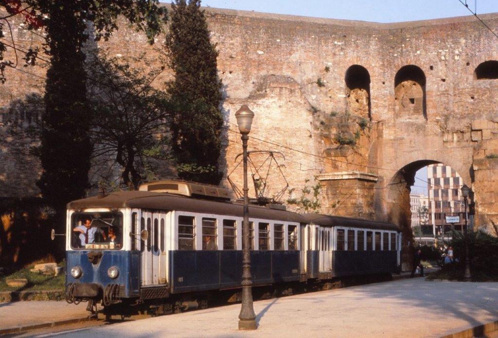 A Rome, piazza Labicano, photographie d’une motrice de la série 2000 MRS opérant sur la ligne 30/ en direction du terminus nord, le jeudi 20 mai 1982. Copyright : jean-pierre autié