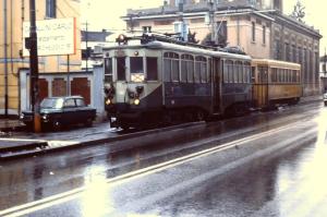 - Sur la photo prise le jeudi 13 mars 1980, la motrice 45 Desio Carminati & Toselli (année 1926) et ses deux remorques voyageurs, venant de Carate et circulant en direction du terminus « Milan Via Vialtellina », sont photographiées à Desio via Giuseppe-Garibaldi. Copyright : Michel Bozzola