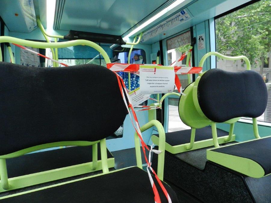 Photographie prise à bord d’une des deux motrices de la rame 2022 Citadis 401 Alstom, opérant sur la ligne 1 en direction du terminus « Odysseum », le jeudi 30 avril 2020, 45e jour de confinement quasi généralisé pour cause de coronavirus Covid-19. Copyright : Anje34