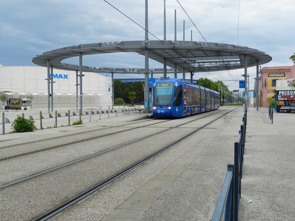 La rame 2022 Citadis 401 Alstom, opérant sur la ligne 1 en direction du terminus « Mosson », est photographiée à la station « Place de France », le jeudi 30 avril 2020, 45e jour de confinement quasi généralisé pour cause de pandémie de coronavirus Covid-19. Copyright : Anje34
