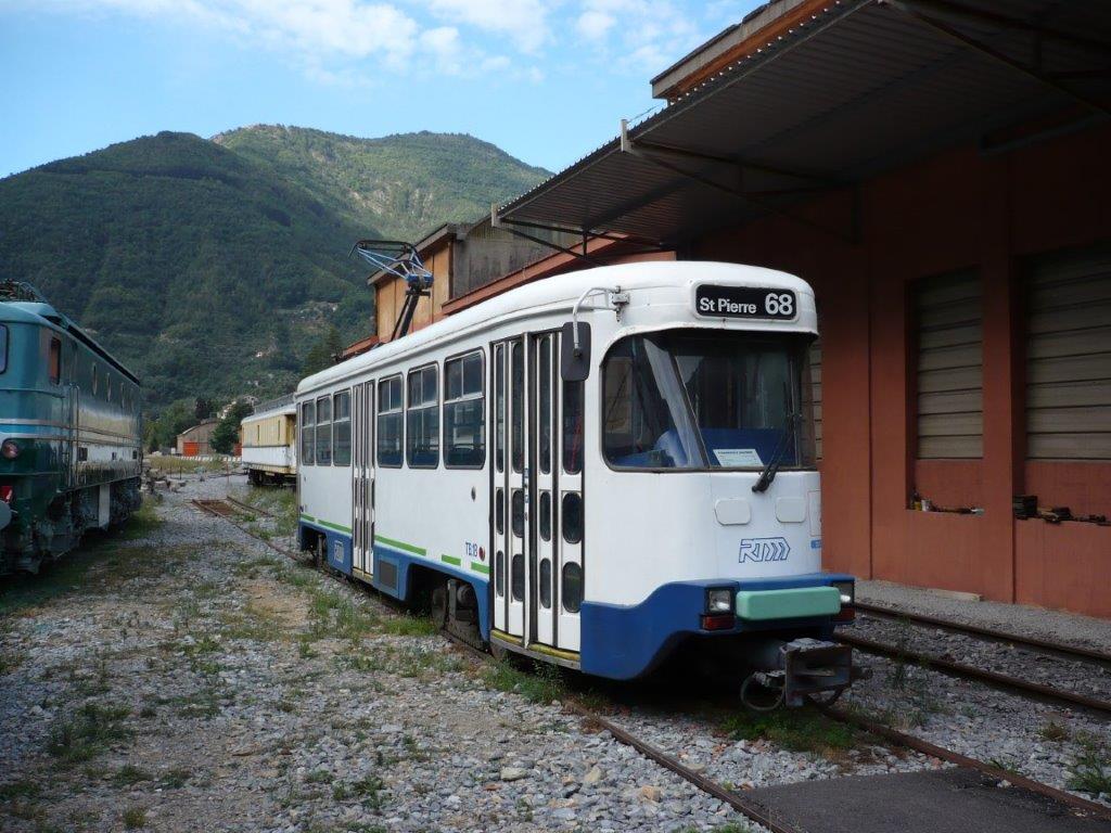 La motrice TB18 PCC La Brugeoise et Nivelles, ayant opéré durant près de vingt ans sur la ligne 68 de tramway de Marseille, est photographiée sur une voie située dans l’enceinte de l’écomusée du haut-pays et des transports de Breil-sur-Roya (Alpes-Maritimes), le lundi 25 août 2008. Copyright : Edouard Paris