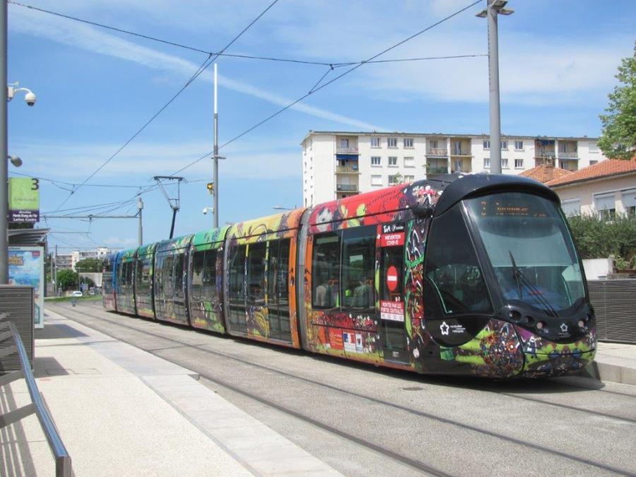 La rame 2077 Citadis 402 Alstom, opérant sur la ligne 3 en direction du terminus « Juvignac », est photographiée à la station « Jules Guesde », le mardi 5 mai 2020, 50e jour de confinement quasi généralisé pour cause de pandémie de coronavirus Covid-19. Copyright : Edouard Paris