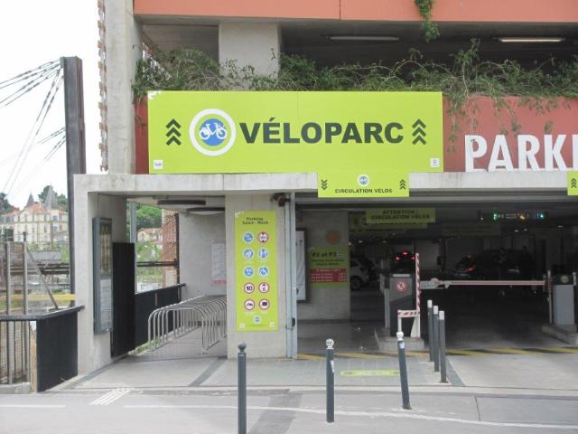 Entrée et sortie du nouveau véloparc par le Pont-de-Sète à Montpellier, au niveau P2 du parking Saint-Roch. Photo prise le jeudi 14 mai 2020. Copyright : Edouard Paris